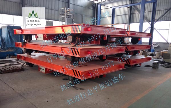 1、平板車是一種電動有軌廠內運輸車輛。又稱電動平車、臺車、過跨車。它具有結構簡單、使用方便、容易維護、承載能力大、污染少等優點。廣泛用于機器制造和冶金工廠,作為車間內部配合吊車運輸重物過跨之用。KP 系列電動平車高度低,臺面加強,改型容易,維修方便。此系列平車可改裝為電瓶直流供電方式供電,改為直流供電后不僅增加了安全,而且不怕燙,不怕砸,不妨礙交叉運輸,容易實現遙控和自動化,可以在彎道,環行道上行駛,適應增加降壓變壓器數量可不受平車運行距離的限制,給廠區運輸平面布置以很大方便,大大的增加了作業范圍。平板車是一種電動有軌廠內運輸車輛。又稱電動平車、臺車、過跨車。它具有結構簡單、使用方便、容易維護、承載能力大、污染少等優點。廣泛用于機器制造和冶金工廠,作為車間內部配合吊車運輸重物過跨之用。KP 系列電動平車高度低,臺面加強,改型容易,維修方便。