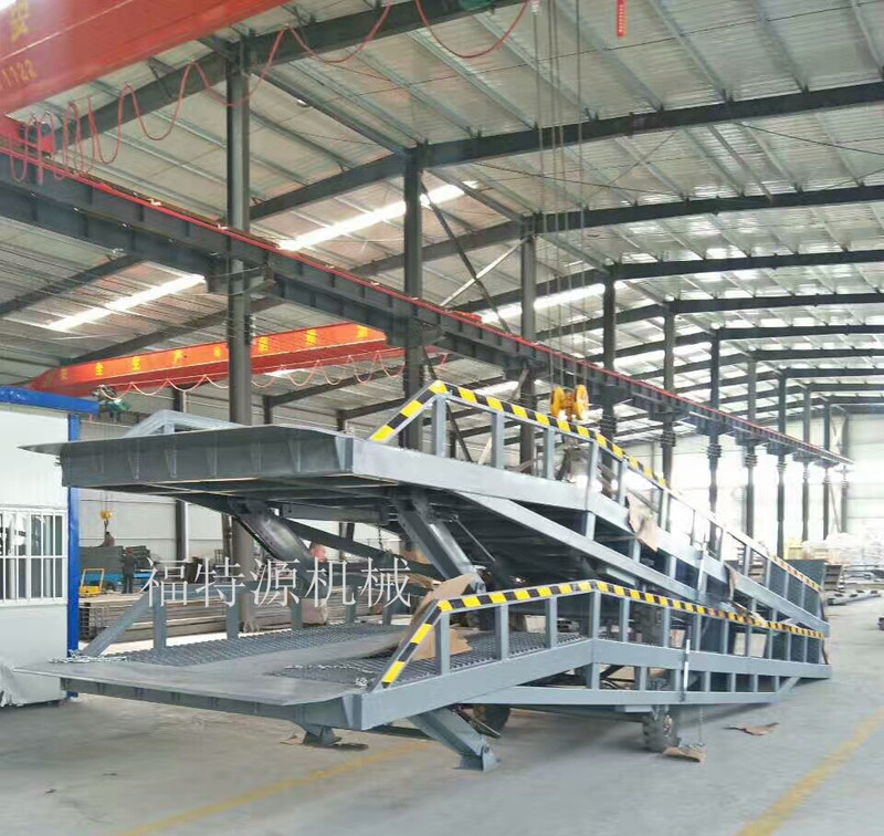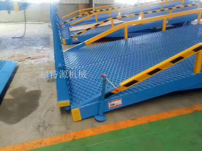 登車橋分為固定式、移動式兩種,采用國產/進口液壓系統。它的主要作用是在貨臺與運輸車輛之間搭起一座橋,使叉車便利地行駛,達到高效裝卸貨目的。該設備一端與貨臺等高,另一端搭在車廂后沿,并能根據不同的車型及裝車過程中車廂的高低變化,自動調整高度。該產品可根據用戶的不同需要,在外形尺寸、承受載荷等方面特殊設計。